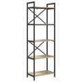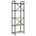This Industrial Bookshelf enhances any space with its robust build and stylish look, combining aesthetic appeal with functional utility. Made to hold books, decor, and more, it provides ample storage in any room such as a home office or living room. Its bold silhouette is crafted from sturdy materials, with a contemporary industrial design drawing inspiration from urban lofts. Perfect for those seeking a functional yet stylish solution, it seamlessly complements a variety of interior styles. Materials: Featuring engineered wood, renowned for its abrasion resistance, this bookshelf offers a sophisticated appearance and excellent durability over time. Engineered wood presents a smooth surface ready for your most treasured items, promising longevity and strength to support your storage needs. Included Components: The bookshelf is designed with board shelves constructed for flexibility and stability. Connected by a robust steel frame, its square legs ensure the bookshelf remains steady, even on uneven surfaces. The freestanding floor design adds versatility, making it easy to move or reposition as required. Features /Function /Design: Boasting easy maintenance and a robust frame, this bookshelf delivers both practicality and reliability. As a practical solution, it allows for a seamless organization of books and decor, making it an indispensable companion for those who value both style and orderliness in their space. Recommended Uses: Ideal for the home office, study, or living room, the bookshelf serves as a reliable storage unit for books, decorative items, and various knick-knacks. Its industrial flair complements various styles, fitting elegantly into contemporary and traditional room settings alike. Care &Maintenance: Keep your bookshelf pristine by wiping it with a dry cloth, avoiding harsh chemicals and abrasives. These simple care steps ensure that the bookshelf remains a lasting fixture, maintaining its aesthetic appeal for years to come.