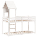 This kids' bunk bed with roof is elegant and functional, making it a perfect addition to any room with limited space. Solid pine wood: Solid pine wood is a beautiful natural material. Pine wood has a straight grain, and the knots give the material its signature, rustic look.Safe design: The loft bed is designed with safety in mind. It features guardrails to keep the user from rolling out while sleeping.Plywood slats: The plywood slats provide good weight distribution, ensuring that the mattress stays in place with every twist and turn of your body during sleep.Great fun: By combining the roof with your child's bed, you can create a hideaway that offers your kid lots of bedtime fun. This innovative addition will not only be a thrilling focal point but will also bring wonder and excitement to the kids' room.Suitable for limited space: The bed frame makes an excellent choice for any room with limited space, it provides two individual beds with compact design.Open side door: The roof features an open side door, providing easy access for your kids to get in and out of bed. Good to know:A mattress is not included with this bed. We do offer a various selection of mattresses. You can check our shop for a matching mattress.