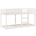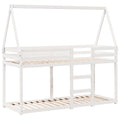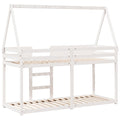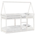 This kids' bunk bed with roof is elegant and functional, making it a perfect addition to any room with limited space. Solid pine wood: Solid pine wood is a beautiful natural material. Pine wood has a straight grain, and the knots give the material its signature, rustic look.Safe design: The loft bed is designed with safety in mind. It features guardrails to keep the user from rolling out while sleeping.Plywood slats: The plywood slats provide good weight distribution, ensuring that the mattress stays in place with every twist and turn of your body during sleep.Great fun: By combining the roof with your child's bed, you can create a hideaway that offers your kid lots of bedtime fun. This innovative addition will not only be a thrilling focal point but will also bring wonder and excitement to the kids' room.Suitable for limited space: The bed frame makes an excellent choice for any room with limited space, it provides two individual beds with compact design.Open side door: The roof features an open side door, providing easy access for your kids to get in and out of bed. Good to know:A mattress is not included with this bed. We do offer a various selection of mattresses. You can check our shop for a matching mattress.