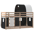 This wooden bunk bed is elegant and functional, making it a perfect addition to any room with limited space. Solid pine wood: This bunk bed is made of solid pine wood for stability and durability. Pine wood has a straight grain, and the knots give the material its signature, rustic look.Great fun: You can combine the curtains with the low bunk bed to create your child's secret base, providing great fun at bedtime and adding a focal point to the bedroom!Safety guardrails: The top bunk comes with safety guardrails on all 4 sides, so your child can sleep without worrying about falling off.Convenient ladder: This double bunk bed has a ladder that provides convenience for getting on and off the bed. It also brings joy and turns their room into an indoor playground. Good to know:A mattress is not included with this bed. We do offer a various selection of mattresses. You can check our shop for a matching mattress. Warning:To prevent it from tipping over, this product must be used with the provided wall attachment device.