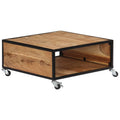 This coffee table exudes a rustic charm. It will definitely make a striking addition to your interior. The couch table is made of solid acacia wood that has been given a finish by polishing and lacquering, to give it a refined look. The craftsmanship and the classy wood grains make every piece of furniture unique and slightly different from the next. This side table features 1 compartment, providing commodious space for storing your multimedia appliances, books, as well as various other items. Equipped with 4 casters, the wooden coffee table is easy to move around. Important note: The grains vary from piece to piece, making each piece unique. The delivery is random, ensuring the exclusivity and individuality of your product.