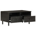 Add a touch of elegance to your living room with this stylish coffee table. Solid mango wood: Solid mango wood is a strong, tropical hardwood that makes sturdy furniture. Its beautiful wood grains make every piece of furniture slightly different from the next. Made of solid mango wood, the side table is durable and stable.Ample storage space: This sofa table offers ample storage space to keep your essentials well organised and within reach.Sturdy tabletop: The sturdy tabletop of the living room table is perfect for placing your drinks, food and other decorative items.Practical door: Keep your essentials free from dust by hiding them behind the door of this couch table.Iron legs: The iron legs add a calm style to your interior while ensuring stability.