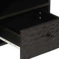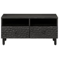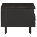 - Material: Solid mango wood with black stain, engineered wood, iron
