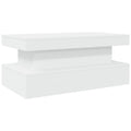Decorate your living room with this modern coffee table with LED lights, it easily blends with furniture in any style at your house. Durable material: The engineered wood is of exceptional quality with smooth surface and also features strength, stability and resistance to moisture.Sturdy tabletop: The sturdy tabletop of this side table provides a secure surface, on which you can place drinks, vases, fruit bowls or ornaments.RGB LED lights: The couch table is equipped with vibrant RGB LED lights. With various customisable menus, you can effortlessly change the colour of the lights and even set them to adjust automatically. These LED lights not only enhance the contemporary look of the centre table but also add to its trendy appeal.Versatile design: This sofa table can meet your different requirements for it can be used as a side table, tea table or telephone table. Good to know:The product has a USB connector that requires a certified 5V USB power source (not included).