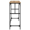 This industrial-style console table embodies the rugged charm of urban loft living while maintaining a sleek, understated elegance. Perfect for a living room or hallway, it blends with various decorative styles and provides an ideal balance of storage and display. Its surface, crafted from engineered wood, offers a smooth finish that is both stain resistant and pleasing to the eye, allowing it to serve as a functional centerpiece or supportive accent piece. The table integrates easily into a home's setup, offering flexibility and style through its purposeful design and robust build. Engineered Wood Surface: The console table boasts an engineered wood top, renowned for its durability and stain-resistant features. This material not only supports substantial weight without bowing but maintains its aesthetic across varied usage scenarios. Perfect for displaying books, décor, or key household items, the finish stands resilient against the wear and tear of everyday life. Steel Frame and Legs: Standing on a strong steel frame with post legs, this table provides firm support. The durability of metal ensures the table stands the test of time, creating a reliable foundation for all display needs. Ideal for those prioritizing stability and strength in their furniture. Adjustable Levelers: With manual levelers on each leg, the table accommodates uneven flooring and guarantees stability. This feature ensures the aesthetic integrity and display utility of the table in diverse home settings, including living rooms or entryways. Industrial Design Style: Inspired by urban lofts, the table’s industrial style mixes raw elegance with practicality. Its design, suitable for warehouses or modern settings alike, emphasizes both form and functionality, appealing to a broad aesthetic palate. Simple Maintenance: Caring for this console table is straightforward, requiring nothing more than a quick wipe with a damp cloth. This low-maintenance requirement makes it perfect for busy households, ensuring it remains a sophisticated focal point without creating added work for its owner.