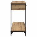 This Console Table is a perfect amalgamation of industrial style and practical design, lending an urban edge to any living space. Crafted with a textured surface and a rectangular shape, it serves as an eye-catching focal point while offering versatility in its uses. Placed in a hallway or living room, it seamlessly combines aesthetic with functionality, complemented by its robust steel legs and innovative storage solutions. Whether used to display statement decor or store essentials, this table reflects a sophisticated yet laid-back vibe perfectly suited for modern homes. Industrial Aesthetic: This console table embodies the industrial style with its textured, engineered wood surface that evokes a sense of raw urban charm. With a metallic frame and prominent steel legs, it brings a touch of warehouse chic into any room, making it an attractive centerpiece for the modern living area. The melding of metal and engineered wood achieves a balance of sturdiness and contemporary elegance. Storage Capabilities: Ideal for both display and storage, the table includes compartments and traditional drawers with matte knobs. It's designed to house various items without compromising on style, offering board shelves that cater to decorative pieces, books, or utility items. This combination of drawers and shelving optimizes storage with an open yet organized layout. Feature-rich Design: Equipped with adjustable feet, this console table allows for precise leveling on uneven surfaces, delivering stability in different settings. The manual adjustment mechanism provides users the flexibility to ensure the table remains steadfast, ideal for dynamic living spaces where reconfiguration might be necessary. Durability and Maintenance: Engineered wood with stain-resistant qualities makes this piece resilient against common household chemicals and accidental spills. It's built for longevity, requiring minimal maintenance; simply wipe clean with a damp cloth to maintain its fresh appearance. A practical choice for busy households where ease of care is paramount. Assembly and Safety: Delivered as 1 x Console Table, it requires assembly using a screwdriver by two people. Safety features include anti-tip devices ensuring the table stays firmly in place, fostering a safe environment for homes with kids or pets, and providing peace of mind during installation.