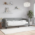 This 2-in-1 daybed with mattress, serving as both a sofa and bed, makes a practical and eye-catching addition to your living room or bedroom. Versatile day bed: The sofa bed can be used as a sofa during the day, or as a bed at night to offer a quick solution to accommodate overnight guests.Comfortable foam mattress: This sleeper bed is supplied with a foam mattress for maximum support and optimum comfort.Durable fabric and solid construction: This daybed sofa has a sturdy frame made of wood and metal and is upholstered in durable and comfortable fabric.