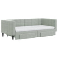 This 2-in-1 daybed with trundle, serving as both a sofa and bed, makes a practical and eye-catching addition to your living room or bedroom. Versatile daybed: The sofa bed functions as a sofa during the day and easily converts into a double bed at night by pulling out the trundle, providing a convenient solution for hosting guests and maximising space.Ample storage space: This guest bed has two drawers with wheels that provide ample space for storing your clothes, socks, toys, cushions, etc.Comfortable foam mattress: This sleeper bed is supplied with two foam mattresses for maximum support and optimum comfort.Durable velvet and solid construction: This day bed sofa has a sturdy frame made of wood and metal and is upholstered in durable and comfortable velvet.