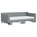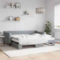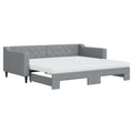 This 2-in-1 daybed with trundle, serving as both a sofa and bed, makes a practical and eye-catching addition to your living room or bedroom. Versatile daybed: The sofa bed functions as a sofa during the day and easily converts into a double bed at night by pulling out the trundle, providing a convenient solution for hosting guests and maximising space. Comfortable foam mattress: This sleeper bed is supplied with two foam mattresses for maximum support and optimum comfort. Durable fabric and solid construction: This day bed sofa has a sturdy frame made of wood and metal and is upholstered in durable and comfortable fabric.