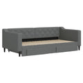 This 2-in-1 daybed with trundle, serving as both a sofa and bed, makes a practical and eye-catching addition to your living room or bedroom. Versatile daybed: The sofa bed functions as a sofa during the day and easily converts into a double bed at night by pulling out the trundle, providing a convenient solution for hosting guests and maximising space. Ample storage space: This guest bed has two drawers with wheels that provide ample space for storing your clothes, socks, toys, cushions, etc. Durable fabric and solid construction: This day bed sofa has a sturdy frame made of wood and metal and is upholstered in durable and comfortable fabric. Good to know:Mattresses are not included with this daybed. We do offer a various selection of mattresses. You can check our shop for matching mattresses.