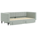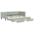 This 2-in-1 daybed with trundle, serving as both a sofa and bed, makes a practical and eye-catching addition to your living room or bedroom. Versatile daybed: The sofa bed functions as a sofa during the day and easily converts into a double bed at night by pulling out the trundle, providing a convenient solution for hosting guests and maximising space.Ample storage space: This guest bed has two drawers with wheels that provide ample space for storing your clothes, socks, toys, cushions, etc.Durable velvet and solid construction: This day bed sofa has a sturdy frame made of wood and metal and is upholstered in durable and comfortable velvet. Good to know:Mattresses are not included with this daybed. We do offer a various selection of mattresses. You can check our shop for matching mattresses.