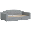 This 2-in-1 daybed with trundle, serving as both a sofa and bed, makes a practical and eye-catching addition to your living room or bedroom. Versatile daybed: The sofa bed functions as a sofa during the day and easily converts into a double bed at night by pulling out the trundle, providing a convenient solution for hosting guests and maximising space. Ample storage space: This guest bed has two drawers with wheels that provide ample space for storing your clothes, socks, toys, cushions, etc. Durable fabric and solid construction: This day bed sofa has a sturdy frame made of wood and metal and is upholstered in durable and comfortable fabric. Good to know:Mattresses are not included with this daybed. We do offer a various selection of mattresses. You can check our shop for matching mattresses.