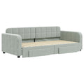 This 2-in-1 daybed with trundle, serving as both a sofa and bed, makes a practical and eye-catching addition to your living room or bedroom. Versatile daybed: The sofa bed functions as a sofa during the day and easily converts into a double bed at night by pulling out the trundle, providing a convenient solution for hosting guests and maximising space.Ample storage space: This guest bed has two drawers with wheels that provide ample space for storing your clothes, socks, toys, cushions, etc.Soft velvet and solid construction: This day bed sofa has a sturdy frame made of wood and metal and is upholstered in soft and comfortable velvet.Modern design: The couch bed has a modern design that features clean lines, a minimalistic look, as well as natural light, and will add a modern style to your interior! Good to know:Mattresses are not included with this bed. We do offer a various selection of mattresses. You can check our shop for matching mattresses.