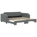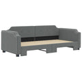 This 2-in-1 daybed with trundle, serving as both a sofa and bed, makes a practical and eye-catching addition to your living room or bedroom. Versatile daybed: The sofa bed functions as a sofa during the day and easily converts into a double bed at night by pulling out the trundle, providing a convenient solution for hosting guests and maximising space.Durable fabric and solid construction: This day bed sofa has a sturdy frame made of wood and metal and is upholstered in durable and comfortable fabric.Modern design: The couch bed has a modern design that features clean lines, a minimalistic look, as well as natural light, and will add a modern style to your interior! Good to know:Mattresses are not included with this bed. We do offer a various selection of mattresses. You can check our shop for matching mattresses.