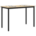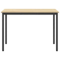 This rectangular dining table seamlessly combines modern aesthetics with functional design, making it a stunning centerpiece for any dining room or kitchen. Adorned with clean lines and a minimalist structure, it serves as an ideal choice for contemporary homes looking to enhance their interior with a touch of elegance. Its versatile form not only complements a variety of decor styles but also provides a practical surface for hosting dinners, gatherings, or everyday meals. Engineered Wood Surface The table features a sturdy engineered wood surface that provides excellent durability and resistance to everyday wear. Easy to clean, this material also offers a refined finish that enhances the overall appearance of your dining space. Its smooth texture makes it ideal for both social gatherings and quiet family dinners. Black Metal Frame The sleek black metal frame provides robust support to the table, ensuring stability during use. Its contemporary appearance blends seamlessly with modern decor, making it a perfect fit for both dining rooms and open living spaces. Square Metal Legs These square legs not only enhance the table's modern design but also offer a sturdy foundation. Designed for lasting performance, the legs ensure reliable support, maintaining the table's structural integrity over time. Ideal for those looking for a stable and secure dining experience. Simple Functionality Crafted for straightforward use, the table exemplifies practicality with its easy-to-clean surface. Just a simple wipe with a damp cloth keeps it looking pristine, making it an excellent choice for busy households or those who entertain frequently. Assembly Requirement Though assembly is required using a screwdriver, the process is straightforward and involves two people, allowing you to set up your dining area quickly and efficiently. This consideration makes it accessible and ideal for households looking to quickly enhance their dining space.