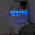 This headboard cabinet with LED, featuring a stylish design, gives your bed frame a stunning modern touch and is perfectly suitable in any bedroom. Durable material: The engineered wood is of exceptional quality with smooth surface and also features strength, stability and resistance to moisture.RGB LED lights: The bed headboard is equipped with vibrant RGB LED lights. With various customisable menus, you can effortlessly change the colour of the lights and even set them to adjust automatically. These LED lights not only enhance the contemporary look of the bed header but also add to its trendy appeal.Ample storage space: Featuring compartments and a sturdy top, the bed headboard cabinet is perfect for displaying your books, decorative items, picture frames and alarm clocks.Excellent support: The headboard for bed provides you with excellent back support when you sit up in bed to read or watch TV. Good to know:The delivery includes LED headboard only. The bed frame and mattress are not included. You can check our shop for the matching frames and mattresses.The product has a USB connector that requires a certified 5V USB power source (not included). Warning:To prevent it from tipping over, this product must be used with the provided wall attachment device.