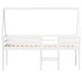 This high sleeper bed, with versatility at the heart of its design, is a perfect combination of sleek, modern styling and practicality. It is ideal for small rooms. Solid pine wood: Solid pine wood is a beautiful natural material. Pine wood has a straight grain, and the knots give the material its signature, rustic look.Practical function: The loft bed offers a great way to utilise floor space in your child's bedroom, you can combine it with a cool game curtain, game mattress and shed panel as a play corner or use the area underneath for storage. The plywood slats provide additional support for your bed. It extends the lifetime of your mattress by absorbing most of the stress and weight on the bed.Safe design: The high bed's built-in ladder makes climbing in and out of bed easy, and guardrails ensure your young ones stay safe while they slumber.Great fun: By combining the roof with your child's bed, you can create a hideaway that offers your kid lots of bedtime fun. This innovative addition will not only be a thrilling focal point but will also bring wonder and excitement to the kids' room.Open side door: The roof features an open side door, providing easy access for your kids to get in and out of bed. Good to know:A mattress is not included with this bed. We do offer a various selection of mattresses. You can check our shop for a matching mattress.