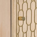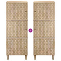 This classic highboard is meant to make a decorative and practical addition to your home. Solid mango wood: Solid mango wood is a strong, tropical hardwood that makes sturdy furniture. Its beautiful wood grains make every piece of furniture slightly different from the next. Made of solid mango wood, the cabinet is durable and stable.Ample storage space: The sideboard provides ample storage space for keeping your various daily essentials well-organised and within easy reach.Practical door: Keep your space clutter-free by hiding small essentials behind the doors of the side cabinet.Wooden feet: The wooden feet give the product a natural and pleasant look while ensuring stability. It can blend well with any interior decor.Hand-carved design: This storage cabinet with hand-carved patterns brings the luxury of elegant charm to your interior, being the focal point of your room. Good to know:Each item is unique with variations in colours and grains. The delivery is random, ensuring the exclusivity and individuality of your product. Warning:To prevent it from tipping over, this product must be used with the provided wall attachment device.