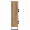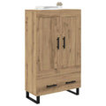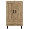 This modern highboard storage cabinet offers an elegant storage solution for your living space. Designed with a sleek rectangular shape, it combines functionality with a minimalistic aesthetic, making it a perfect fit for contemporary homes. Whether showcasing decor or storing essentials, its sizeable design provides versatility and ample room for all your needs. Stylish yet practical, this highboard enhances any living room while keeping spaces organized and harmonious. Materials: Constructed with engineered wood known for its strength and resilience. Its abrasion-resistant properties ensure longevity, maintaining its sophisticated appearance. This quality material withstands long-term use, providing reliable storage for various household items. Included Components: Features board shelves crafted as a straightforward shelving solution. Hinge doors offer easy access to contents, complemented by metal bar handles in a matte finish. The robust square leg design adds stability ensuring dependable functionality. Features /Function /Design: Ample storage space makes it ideal for organizing living room essentials. With traditional drawer systems and handle pulls, accessing storage is simplified. Its modern style with clean lines seamlessly integrates into contemporary spaces improving visual appeal. Recommended Uses: Perfect for organizing items in the living room or any indoor area requiring elegant storage. Its versatility suits various settings, from holding books and décor in homes to accommodating files and supplies in office environments. Care &Maintenance: Maintaining this cabinet involves simply wiping with a dry cloth. For added safety, secure the highboard to the wall using the provided attachment to prevent tipping. Regular maintenance ensures an attractive and safe piece for prolonged use.