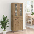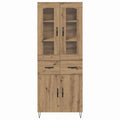 This modern highboard presents itself as a prime piece of furniture in any living space, with its sleek, rectangular design exuding a contemporary vibe. Its engineered wood structure offers a robust platform, coupled with modern aesthetics highlighted by a matte frame finish. A versatile storage solution, it fits seamlessly into modern interiors, providing ample room for organizing essentials in dining rooms or living spaces. Engineered Wood Composition: Featuring a structure built entirely of engineered wood, this highboard capitalizes on both strength and aesthetic appeal. Engineered wood offers a sophisticated look paired with durable quality, ensuring a long-lasting piece that stands up to daily demands. Its non-reflective matte finish ensures that it blends uniformly into a variety of decor styles while maintaining a neat, clutter-free appearance. Component Versatility: Elements such as board shelves and hinged doors complement this piece, making organization both visually appealing and practical. With ample shelving, users can comfortably categorize items, maximizing space efficiency. Its hinges provide smooth opening and closing, maintaining the ease of access. Black metal bar handles add a sleek touch, completing the highboard with both function and style. Designed Functionality: Intended to serve multiple needs, the highboard's configuration supports both storage goals and aesthetic aspirations. Its expansive dimensions introduce an element of grandeur, while its configuration optimizes ease of use. From living rooms to dining spaces, this highboard accords itself to multiple environments with style. Customized Use Capabilities: This is a perfect fit for various indoor settings. Its modern highboard design makes it suitable for those seeking a sophisticated means to organize possessions efficiently within living spaces, effortlessly supporting the dynamic needs of diverse homes. Care &Maintenance Instructions: The highboard's care requirements are simple yet effective. Wipe surfaces with a dry cloth to prevent dust accumulation. Avoid harsh chemicals to maintain its surface integrity. For protective assembly, ensure the product's wall attachment device is engaged, keeping it secure and stable.