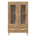 This Engineered Wood Highboard combines modern style with functionality, making it a stylish addition to any living room. With a sleek rectangular shape, it brings a contemporary edge to your space, perfect for organizing and showcasing your personal treasures. The highboard's polished handles, tapered legs, and glass doors add a touch of sophistication, while its engineered wood frame ensures lasting stability. Whether it's to store books, display decor, or hold essential items, this highboard offers a spacious solution that blends effortlessly with modern and minimalist interiors. Construction Quality: The highboard is crafted from engineered wood, known for its stability and resistance to wear. With thoughtful construction, it ensures long-term durability, maintaining its structure and aesthetics through frequent use. Engineered wood is an eco-conscious choice, balancing strength and sustainability for household furniture. Modern Aesthetic Appeal: The highboard's modern design is defined by simplicity, function, and minimal ornamentation. Clean lines complement the glass doors and polished handles, creating an elegant piece that blends with contemporary décor. Perfect for adding a touch of sophistication to any room setting. Functional Components: With board shelves and ball-bearing drawers, this highboard provides flexible storage space. Glass doors offer transparency, making it easy to locate items, while ensuring they are protected from dust. Beige tapered legs add a mid-century touch, providing stability on various floor surfaces. Versatile Uses: Designed for diverse settings, it's ideal for living rooms, providing a stylish storage solution that adapts to changing interior needs. Whether used for books, heirlooms, or daily essentials, it integrates seamlessly with existing furniture. Care &Maintenance: A practical approach to cleanliness is encouraged with simple wipe-down care using a damp cloth. For safety, securing the tall furniture to the wall prevents tipping, ensuring peace of mind in a busy household. Designed with ease of maintenance in mind, it retains its refined look over time.