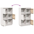 Introduce a unique charm to your existing interior with this wooden highboard! Premium material: Solid pine wood is a beautiful natural material. Pine wood has a straight grain, and the knots give the material its signature, rustic look.Practical design: The sideboard provides ample storage space to store and display your books, magazines, potted plants, framed photos and other personal belongings well organised and within reach.Two assembling options: The doors of the cabinet can be installed on the left or right according to your needs. Warning:To prevent overturning, this product must be used with the wall attachment device provided.