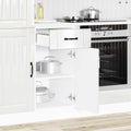 This kitchen base cabinet optimises your kitchen space, providing ample storage space for your personal belongings! Stable and durable material: Engineered wood is a durable and stable material with a smooth surface that is resistant to moisture, warping, and splitting, making it a reliable choice for a variety of projects.Ample storage space: The sink base cabinet offers sufficient space to store bowls, plates, pots, and other kitchen appliances.Practical doors: The door helps maintain a clean and organised space by concealing kitchen appliances and clutter behind them.Adjustable feet: The feet of this cabinet can be adjusted in height to suit your kitchen layout.Easy to maintain: Thanks to its smooth surface, this kitchen base cabinet is easy to clean with a damp cloth and requires less maintenance. Warning:To prevent it from tipping over, this product must be used with the provided wall attachment device. Good to know:Screw(s) and plug(s) for inside the wall are not included. Seek and use screw(s) and plug(s) suitable for your walls. If you are uncertain, seek professional advice. Read and follow each step of the instruction carefully.