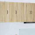 A wooden kitchen cabinet designed with a modern flair, this cabinet offers a sleek, contemporary edge ideal for contemporary kitchens. It's engineered wood composition ensures resilience and functionality, making it suitable for indoor use. The cabinet adds elegance to any kitchen space with its clean lines and minimal ornamentation. It's crafted to cater to both utility and style, providing ample storage with its thoughtfully designed compartments and shelves. Whether you're storing dishes or pantry items, it seamlessly blends with modern kitchen decor, elevating the ambiance and efficiency of your cooking space. Superior Engineered Wood: This kitchen cabinet is crafted from engineered wood, offering both durability and aesthetic appeal. It is an excellent choice for those seeking a robust and long-lasting storage solution. Its construction ensures stability, making it a reliable fixture in your kitchen for storing various essentials safely. Comprehensive Storage Solution: Designed with ample compartments and shelves, it provides extensive storage options for kitchen essentials, from condiments to cookware, keeping your space organized. Its wall-mounted feature allows you to make the most of vertical space while maintaining an uncluttered kitchen up top. Functional Features: The cabinet's practical design elements include spacious shelving, allowing easy access and visibility of stored items. It caters to the need for organization, labeling, and efficient use of pantry space, which enhances daily kitchen activities. Ideal for Indoor Use: Specifically designed for indoor kitchen environments, this cabinet is perfectly suited for homes that value aesthetic consistency. Its sleek design complements modern kitchen decor while offering practicality that matches your lifestyle. Simple Care and Maintenance: The cabinet requires straightforward care with its easy-clean surface. Simply wipe with a damp cloth to maintain its pristine condition, ensuring that daily upkeep fits seamlessly into your routine while prolonging its life and appearance.