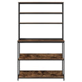 The Industrial Kitchen Shelf is a versatile freestanding storage solution designed to sharpen the distinct aesthetics of kitchens, pantries, or dining rooms. With its robust steel frame and engineered wood shelves, it embodies the raw charm of industrial styling while meeting the practical needs of modern homes. This rectangular shelving unit is perfect for those who appreciate the blend of form and function, offering ample space for everything from kitchen essentials to decorative items. The design elegantly suits urban lofts and industrial-inspired spaces. Materials: Featuring engineered wood shelves complemented by a sturdy steel frame, this shelf showcases resilience and industrial charm. The engineered wood is chosen for its abrasion resistance, ensuring longevity despite frequent use. The combination of these materials creates a piece both functional and visually appealing, adapting seamlessly to a variety of home settings. Included Components: The unit comprises multiple board shelves supported by square steel legs, providing reliability and ample storage. The levelers ensure the unit stands firm on uneven surfaces, easily stabilizing without additional support. This thoughtful design accommodates various items, from cookware to pantry supplies, making it a valuable addition to any storage setup. Features /Function /Design: The shelves boast easy maintenance, requiring just a dry cloth for cleaning. Their robust structure supports substantial weight, providing storage for a wide range of kitchenware or decorative items. Equal parts functional and stylish, the freestanding design aligns with urban spaces, adding an industrial edge to your home aesthetics. Recommended Uses: Perfect for kitchens and dining spaces, this shelf is adaptable for storing culinary essentials or fashionable vignettes. Its versatile design ensures it blends with various environments, offering practical storage without compromising style. Ideal for kitchens, pantries, or dining areas seeking both aesthetics and functionality. Care &Maintenance: Maintain the shelf's pristine condition with simple care routines. A quick wipe with a dry cloth retains its finish, while stronger chemicals should be avoided. This ensures that the shelf keeps looking fresh and maintains its structural integrity, making it a dependable storage solution for years to come.