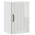 This kitchen wall cabinet is meant to optimise your kitchen space and decorate your home! Stable and durable material: Engineered wood is a durable and stable material with a smooth surface that is resistant to moisture, warping, and splitting, making it a reliable choice for a variety of projects.Ample storage space: The kitchen wall cabinet offers sufficient space to store bowls, plates, pots, and other kitchen appliances.Wall-mounted design: The kitchen cabinet can be wall-mounted to add extra storage space. That way, you can maximise your floor space and keep the area clean.Practical doors: The glass door helps maintain a clean and organised space by concealing kitchen appliances while allowing clear visibility.Easy to maintain: Thanks to its smooth surface, this mounted wall cabinet is easy to clean with a damp cloth and requires less maintenance. Good to know:Screw(s) and plug(s) for inside the wall are not included. Seek and use screw(s) and plug(s) suitable for your walls. If you are uncertain, seek professional advice. Read and follow each step of the instruction carefully.
