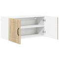 The Wooden Kitchen Wall Cabinet perfectly combines modern aesthetics with practicality in your kitchen space. Designed to elevate both functionality and style, it features a sophisticated silhouette characterized by clean lines and minimal ornamentation. This wall-mounted cabinet is ideal for organizing and storing various kitchen items, providing a convenient storage solution while enhancing the overall appearance of your culinary environment. Material: Made from high-quality engineered wood, this cabinet offers a reliable and attractive solution for kitchen storage. The material is selected for its ability to withstand daily wear and tear, assuring long-term usage and minimal maintenance. It's an ideal choice for those seeking both appearance and durability, ensuring the cabinet remains an integral part of the kitchen for years to come. Shelf Design: Features board shelves that provide a simple yet efficient storage option. These shelves are constructed from engineered wood and are adaptable, making it easy to organize kitchen essentials such as dishes, spices, or cookware. The clear and straightforward shelving layout enhances accessibility, avoiding clutter and promoting an orderly kitchen environment. Hinge Doors: Equipped with sleek hinge doors that enhance the modern design of the cabinet. These doors not only allow for smooth functionality but also provide a sleek facade that complements contemporary kitchens. The inclusion of black bar handles offers a stylish contrast, making them as much a fashion statement as a practical component. Mounted Configuration: Designed with a wall-mounted setup, this cabinet makes excellent use of vertical space, freeing up valuable countertop area for ease of movement and preparation tasks. The cabinet design facilitates a streamlined and organized kitchen setting, contributing to a clutter-free environment. Care Instructions: Maintaining the cabinet is straightforward; simply wipe it down with a damp cloth to remove daily dust and spills. There's no need for harsh chemicals, which means keeping the cabinet clean is quick and hassle-free. Regular care keeps it looking fresh and new, ensuring it remains an essential part of the kitchen decor.