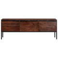 This TV Cabinet, aka the Modern Lowboard Storage Unit, is here to jazz up any living space with its fab mix of modern design and practical use. The smooth matte texture and honey brown colour bring a touch of warmth and elegance, making it fit in with various decor styles. Designed for contemporary homes, this rectangular low-profile cabinet makes the most of space while offering loads of storage. It's perfect for everything from a snazzy media console in the living room to a neat storage solution in the bedroom or office. Materials: Made from solid acacia wood, which is strong and nice to look at. Its warm honey brown finish adds a natural vibe and fits in smoothly with any room's decor. The combo of wood and metal provides a sturdy frame, ensuring it lasts while looking good. Included Components: The back's unfinished for wall placement, but the frame and legs have a sleek matte black finish, adding a modern touch. The parts are carefully chosen to boost your experience and the unit's usability. Features / Function / Design: This unit is all about being functional, with loads of storage for everything from media essentials to personal stuff. Its contemporary design makes it a flexible option for any room, perfect for modern living. Recommended Uses: Ideal for living rooms, bedrooms, or offices, this unit can act as a media console, a storage solution, or even a decorative item. Its modern style accentuates contemporary homes while meeting practical needs for organisation and display. Care & Maintenance: Keeping it nice is simple, just a quick dust with a soft, dry cloth to maintain its great finish. Make sure to tighten any loose screws now and then to keep everything sturdy.