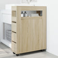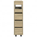 This classic, narrow bathroom cabinet is meant to be a decorative and practical addition to your home. Stable and durable material: Engineered wood is a durable and stable material with a smooth surface that is resistant to moisture, warping, and splitting, making it a reliable choice for a variety of projects.Ample storage space: The narrow bathroom storage provides ample storage space to keep your daily essentials well organised and protect your things from dust and dirt.Easy to move: This slim bathroom cabinet, which includes four swivel wheels, can be easily moved to the desired place. The two wheels are lockable, which keeps the cabinet in position and adds stability.Easy to use: The slim bathroom storage features quality metal runners that can be moved smoothly for easy access to your stored items.Wide applications: This thin bathroom cabinet could be used as a storage cabinet or drawer cabinet in the bathroom, kitchen, or living room, depending on your needs.