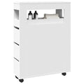 This classic, narrow bathroom cabinet is meant to be a decorative and practical addition to your home. Stable and durable material: Engineered wood is a durable and stable material with a smooth surface that is resistant to moisture, warping, and splitting, making it a reliable choice for a variety of projects.Ample storage space: The narrow bathroom storage provides ample storage space to keep your daily essentials well organised and protect your things from dust and dirt.Easy to move: This slim bathroom cabinet, which includes four swivel wheels, can be easily moved to the desired place. The two wheels are lockable, which keeps the cabinet in position and adds stability.Easy to use: The slim bathroom storage features quality metal runners that can be moved smoothly for easy access to your stored items.Wide applications: This thin bathroom cabinet could be used as a storage cabinet or drawer cabinet in the bathroom, kitchen, or living room, depending on your needs.
