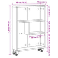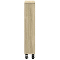 This narrow storage trolley is meant to be a decorative and practical addition to your home. Stable and durable material: Engineered wood is a durable and stable material with a smooth surface that is resistant to moisture, warping, and splitting, making it a reliable choice for a variety of projects.Ample storage space: The slim storage trolley provides ample storage space for keeping your various daily essentials well organised and within easy reach.Easy to move: This rolling cart, with the included four swivel wheels, can be easily moved to the desired place. The two wheels are lockable, which keeps the cabinet in position and adds stability.Practical design: You can keep your toiletries or other items accessible by leaving them open, or hide the contents by placing the trolley with an open side against the wall.Wide applications: Depending on your needs, you can use this storage trolley in the living room, kitchen, or bathroom thanks to its narrow shape, even in small spaces.