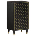 This side cabinet, featuring a timeless look, is meant to be an excellent addition to your home. Solid mango wood: Solid mango wood is a strong, tropical hardwood that makes sturdy furniture. Its beautiful wood grains make every piece of furniture slightly different from the next. Made of solid mango wood, the cabinet is durable and stable.Ample storage space: The cupboard offers ample storage space for keeping your various daily essentials well-organised and within easy reach.Displaying function: The top of the storage cabinet is great for displaying your decorative items, photo albums or small plants.Wooden feet: The wooden feet give the product a natural and pleasant look while ensuring stability. It can blend well with any interior decor.Hand-carved design: This home organiser with hand-carved patterns brings the luxury of elegant charm to your interior, being the focal point of your room. Good to know:Each item is unique with variations in colours and grains. The delivery is random, ensuring the exclusivity and individuality of your product. Warning:To prevent it from tipping over, this product must be used with the provided wall attachment device.