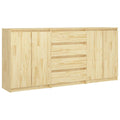 These wooden side cabinets exude a rustic charm and make a great addition to your living space. These nightstands are made of solid pinewood, ensuring their sturdiness and durability. Consisting of 2 cabinets with 2 doors and 3 compartments, 1 cabinet with 4 drawers, they provide ample storage space for keeping your various items well organised and within reach. The sturdy top is also ideal for displaying decorative objects, photo frames, or potted plants. Additionally, these bedside cabinets are easy to clean with a damp cloth. Upgrade your interior to the next level with these elegant cabinets!