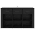 This chic sideboard combines rustic charm with practical storage solutions, offering a stylish and versatile piece for your living room or dining area. Crafted from engineered wood, its textured surface and natural tones beautifully complement any décor while providing substantial space to store or display your essentials. Sturdy Construction Engineered wood craftsmanship ensures long-lasting durability while maintaining a sophisticated appearance. It's designed to withstand daily use, providing reliable support for items placed on its surface or inside its compartments. Generous Storage Space Featuring a collection of compartments, drawers, and board shelves, this sideboard offers ample room to organize dinnerware, linens, or decorative pieces. Shelves crafted from engineered wood offer reliability, while partitions prevent clutter. Stylish Rustic Design With a natural finish and matte black details, this sideboard exudes rugged elegance, making it a fitting addition to a rustic or modern setting. Its attractive design effortlessly enhances the aesthetic appeal of your room. Convenient Drawer Function Smooth ball-bearing slides make the drawers easy to open, providing a effortless access to items stored inside. The engineered wood drawers are both functional and durable, handling your storage needs with ease. Effortless Maintenance To maintain its flawless appearance, simply wipe the sideboard with a damp cloth. Easy to clean and care for, this sideboard is designed for longevity, staying beautiful with minimal upkeep.