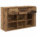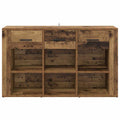 This chic sideboard combines rustic charm with practical storage solutions, offering a stylish and versatile piece for your living room or dining area. Crafted from engineered wood, its textured surface and natural tones beautifully complement any décor while providing substantial space to store or display your essentials. Sturdy Construction Engineered wood craftsmanship ensures long-lasting durability while maintaining a sophisticated appearance. It's designed to withstand daily use, providing reliable support for items placed on its surface or inside its compartments. Generous Storage Space Featuring a collection of compartments, drawers, and board shelves, this sideboard offers ample room to organize dinnerware, linens, or decorative pieces. Shelves crafted from engineered wood offer reliability, while partitions prevent clutter. Stylish Rustic Design With a natural finish and matte black details, this sideboard exudes rugged elegance, making it a fitting addition to a rustic or modern setting. Its attractive design effortlessly enhances the aesthetic appeal of your room. Convenient Drawer Function Smooth ball-bearing slides make the drawers easy to open, providing a effortless access to items stored inside. The engineered wood drawers are both functional and durable, handling your storage needs with ease. Effortless Maintenance To maintain its flawless appearance, simply wipe the sideboard with a damp cloth. Easy to clean and care for, this sideboard is designed for longevity, staying beautiful with minimal upkeep.