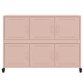 Are you hunting for a stylish sideboard? This well-designed sideboard adds an elegant charm to your existing interior! Durable material: Steel is an exceptionally hard and strong material. It offers sturdiness and stability. Cold-rolled steel plates have good surface quality and high dimensional accuracy.Ample storage space: This sideboard offers handy storage space for keeping your magazines, books, remote controls and other small items well-organised and within reach.Easy to maintain: The cabinet is easy to clean with a damp cloth and requires less maintenance.Easy to move: This sideboard has 4 wheels, making it move flexibly and park stably at any time.