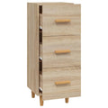 This stylish and practical sideboard is meant to meet all your requirements and is an ideal addition to your room. Sturdy material: The engineered wood is of exceptional quality with smooth surface and also features strength, stability and resistance to moisture. Made of engineered wood, this cabinet is easy to clean.Ample storage space: Designed with 3 drawers, the storage space of this sideboard cabinet makes it easy to keep things organised.Wood feet: The wooden feet give the cupboard a natural and pleasant look while ensuring stability. It can blend well with any interior decor. Warning:In order to prevent overturning, this product must be used with the wall attachment device provided. Note:Each product comes with an assembly manual in the box for easy assembly.