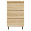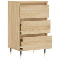 This trendy sideboard, featuring a timeless look, is meant to be an excellent addition to your home. Durable material: The engineered wood is of exceptional quality with smooth surface and also features strength, stability and resistance to moisture.Ample storage space: The sideboard cabinet has 3 drawers, providing ample storage space for keeping your various daily essentials well organised and within easy reach.Displaying function: The top of the cupboard is perfect for placing potted plants, framed photos and other decorative items.Metal legs: The metal legs add a modern and calm style to your interior while ensuring stability. Warning:To prevent it being overturned, this product must be used with the provided wall attachment device.