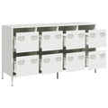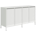 This sideboard with a practical design is a real eye-catcher for your home decor. Robust and stable: Cold-rolled steel is a type of low-carbon steel that is produced using the "cold rolling" process and processed at near-normal room temperatures. Cold-rolled steel has a smoother surface, higher strength, and higher precision.Ample storage space: The cabinet with drawers offers ample storage space for keeping your various daily essentials well organised and within easy reach.Sturdy tabletop: The sideboard cabinet has a sturdy tabletop, on which you can place your decorative items, photo albums, or small plants.Easy to maintain: Thanks to its smooth surface, the metal sideboard is easy to clean with a damp cloth and requires less maintenance. Warning:To prevent it from tipping over, this product must be used with the provided wall attachment device.