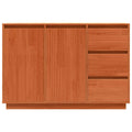 This modern wood sideboard is both a storage unit and a stylish addition to your living room or dining area. With its sleek rectangular shape and contemporary look, it blends well with modern interiors while being super functional. It provides loads of room for your essentials, making it ideal for those who care about both design and practicality. Plus, its solid pine wood build means it’s durable and reliable without skimping on good looks. Materials: Built from solid pine wood, this sideboard flaunts a natural, earthy look with a warm brown finish. Pine wood not only adds a chic touch to your space but also ensures the sideboard is strong enough for daily use. Its handcrafted design promises it stays looking fab for years to come. Included Components: Featuring edge pulls and flush doors, this sideboard takes a minimalist approach, ensuring a smooth, sleek exterior. The drawers glide easily, giving you quick access to your stuff. Inside, there are spacious compartments perfect for tableware, linens, or more. Features / Function / Design: The modern design with clean lines and simple surfaces shows off its versatility for all sorts of decor. The flush door design paired with edge pulls gives it a minimalist vibe, making it fit seamlessly into any setting. Recommended Uses: Great for living rooms and dining areas, this sideboard is spot on for stashing and displaying essentials. Whether you’re getting dinnerware ready for a family meal or just tidying up your living room, its practicality shines through. Care & Maintenance: Just give it a regular dusting with a soft, dry cloth. Steer clear of harsh chemicals to keep it shiny. Minor scratches can be polished out easily to keep it looking fresh.