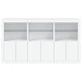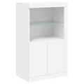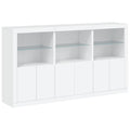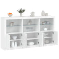 Decorate your room with this modern sideboard with LED lights, it easily blends with furniture in any style at your house. Durable material: The engineered wood is of exceptional quality with smooth surface and also features strength, stability and resistance to moisture.RGB LED lights: The buffet is equipped with vibrant RGB LED lights. With various customisable menus, you can effortlessly change the colour of the lights and even set them to adjust automatically. These LED lights not only enhance the contemporary look of the sideboard cabinet but also add to its trendy appeal.Ample storage space: The storage cabinet offers plenty of space to keep your everyday items neatly arranged and easily accessible.Displaying function: The sturdy top of the hallway cabinet is ideal for displaying decorative objects, photo frames, or potted plants.Practical doors: Keep your essentials free from dust by hiding them behind the doors of the side cabinet. Good to know:The product has a USB connector that requires a certified 5V USB power source (not included). Warning:To prevent it being overturned, this product must be used with the provided wall attachment device.