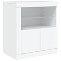Decorate your room with this modern sideboard with LED lights, it easily blends with furniture in any style at your house. Durable material: The engineered wood is of exceptional quality with smooth surface and also features strength, stability and resistance to moisture.RGB LED lights: The buffet is equipped with vibrant RGB LED lights. With various customisable menus, you can effortlessly change the colour of the lights and even set them to adjust automatically. These LED lights not only enhance the contemporary look of the sideboard cabinet but also add to its trendy appeal.Ample storage space: The storage cabinet offers plenty of space to keep your everyday items neatly arranged and easily accessible.Displaying function: The sturdy top of the hallway cabinet is ideal for displaying decorative objects, photo frames, or potted plants.Practical doors: Keep your essentials free from dust by hiding them behind the doors of the side cabinet. Good to know:The product has a USB connector that requires a certified 5V USB power source (not included). Warning:To prevent it being overturned, this product must be used with the provided wall attachment device.