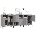 These classic sideboards, featuring a timeless look, are meant to be an excellent addition to your home. Durable material: The engineered wood is of exceptional quality with smooth surface and also features strength, stability and resistance to moisture. Made of engineered wood, the cabinet is easy to clean with a damp cloth.Ample storage space: Equipped with 4 compartments, the sideboard cabinet offers ample storage space for keeping your various daily essentials well organised and within easy reach.Displaying function: The top of the cupboard is great for displaying your decorative items, photo albums or small plants. Good to know:The doors can be installed in two ways. Warning:To prevent it being overturned, this product must be used with the provided wall attachment device.