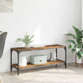 This Engineered Wood Sideboard is a blend of functionality and aesthetic appeal, designed as a freestanding unit perfect for living rooms or home offices. Its rustic style emits a natural, rugged beauty complimented by its rectangular shape, making it the perfect addition for storing your books and decorative pieces in style. With its robust iron frame and engineered wooden shelves, this TV cabinet serves not only as a focal point but also as a versatile space for your essentials, enhancing both storage and visual appeal in any indoor space. Engineered Wood and Iron: Crafted with precision, the cabinet's shelves and surface boast engineered wood, offering a warm, inviting look and resilience against weight and regular use. Coupled with iron legs that provide a stable foundation, this combination ensures longevity and stability, supporting a wide range of items effortlessly. Integrated Components: Featuring durable board shelves, this unit allows for the organization of books, media, and décor. It's framed in iron, giving strength and robustness to the structure, while the arrow foot legs add a stylish touch. Together, these components promote effective use of space. Ample Storage Space: With numerous compartments, this sideboard addresses various storage needs, accommodating larger items comfortably while the shelving units provide spots for delicate embellishments or essentials. This arrangement facilitates a clutter-free, organized living area. Rustic Aesthetic: The sideboard's rustic style evokes timeless elegance, making it a suitable fit for multiple interior designs. Its rustic charm provides a relaxing ambiance, uniting traditional beauty with modern utility. Simple Maintenance: Keep it pristine by wiping surfaces with a damp cloth. Assembly is straightforward and requires two adults, utilizing a screwdriver for a solid build. Secure it to the wall to prevent tipping for extra safety, safeguarding your household and belongings.