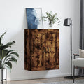 This wall mounted cabinet with an elegant design makes a timeless addition to your interior decor. Sturdy material: The engineered wood is of exceptional quality with smooth surface and also features strength, stability, and resistance to moisture.Ample storage space: The storage cabinet has 3 compartments with 2 doors, providing ample storage space for keeping your daily essentials well organised.Wall-mounted function: This hanging cabinet doesn't take up any floor space. You can hang it on the wall easily.Elegant handles: The square iron door handles which are stylish and durable make your cabinet more attractive.Versatile cabinet: You can also put this floating storage cabinet on top of a sideboard to form a highboard, creating extra storage space. And the simple design makes it suitable for your living room, bedroom, study, and any other living space. Good to know:Screws and plugs for inside the wall are not included. We advise you to find and use screws and plugs suitable specifically for your walls. If you're not sure, you can consult with a professional. Please read and follow each step of the instructions.