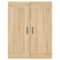 This wall mounted cabinet with an elegant design makes a timeless addition to your interior decor. Sturdy material: The engineered wood is of exceptional quality with smooth surface and also features strength, stability, and resistance to moisture.Ample storage space: The storage cabinet has 3 compartments with 2 doors, providing ample storage space for keeping your daily essentials well organised.Wall-mounted function: This hanging cabinet doesn't take up any floor space. You can hang it on the wall easily.Elegant handles: The black aluminium door handles which are stylish and durable make your cabinet more attractive.Versatile cabinet: You can also put this floating storage cabinet on top of a sideboard to form a highboard, creating extra storage space. And the simple design makes it suitable for your living room, bedroom, study, and any other living space. Good to know:Screws and plugs for inside the wall are not included. We advise you to find and use screws and plugs suitable specifically for your walls. If you're not sure, you can consult with a professional. Please read and follow each step of the instructions.